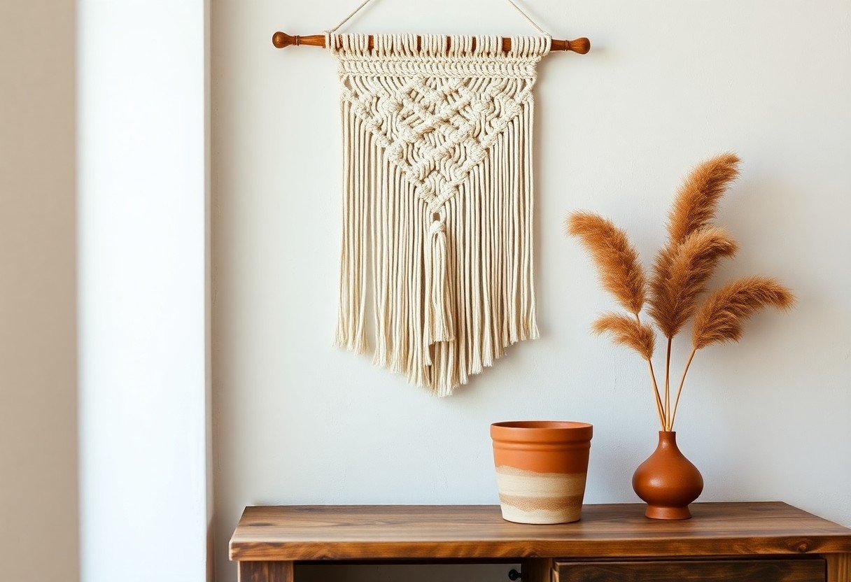 Macramé art weaves intricate beauty into the ordinary, transforming threads into stunning patterns. Its timeless allure radiates a sense of tranquility and craftsmanship that connects us with tradition. The delicate knots and textures create a unique, soulful charm that elevates any space. Macramé, where artistry and nature entwine, adds a touch of boho-chic elegance to our lives.