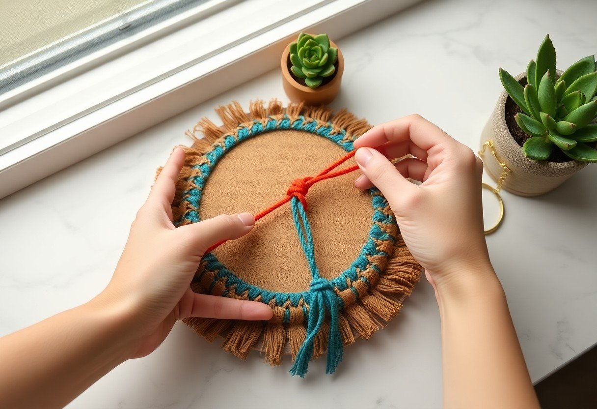 From above, you can confidently use DIY macrame coasters to personalize your home decor while protecting surfaces; select cord and knots that suit your style, vary colors and textures for contrast, scale patterns for different cup sizes, and finish edges neatly to ensure durability-your careful choice of materials and simple maintenance will keep coasters both functional and decorative.