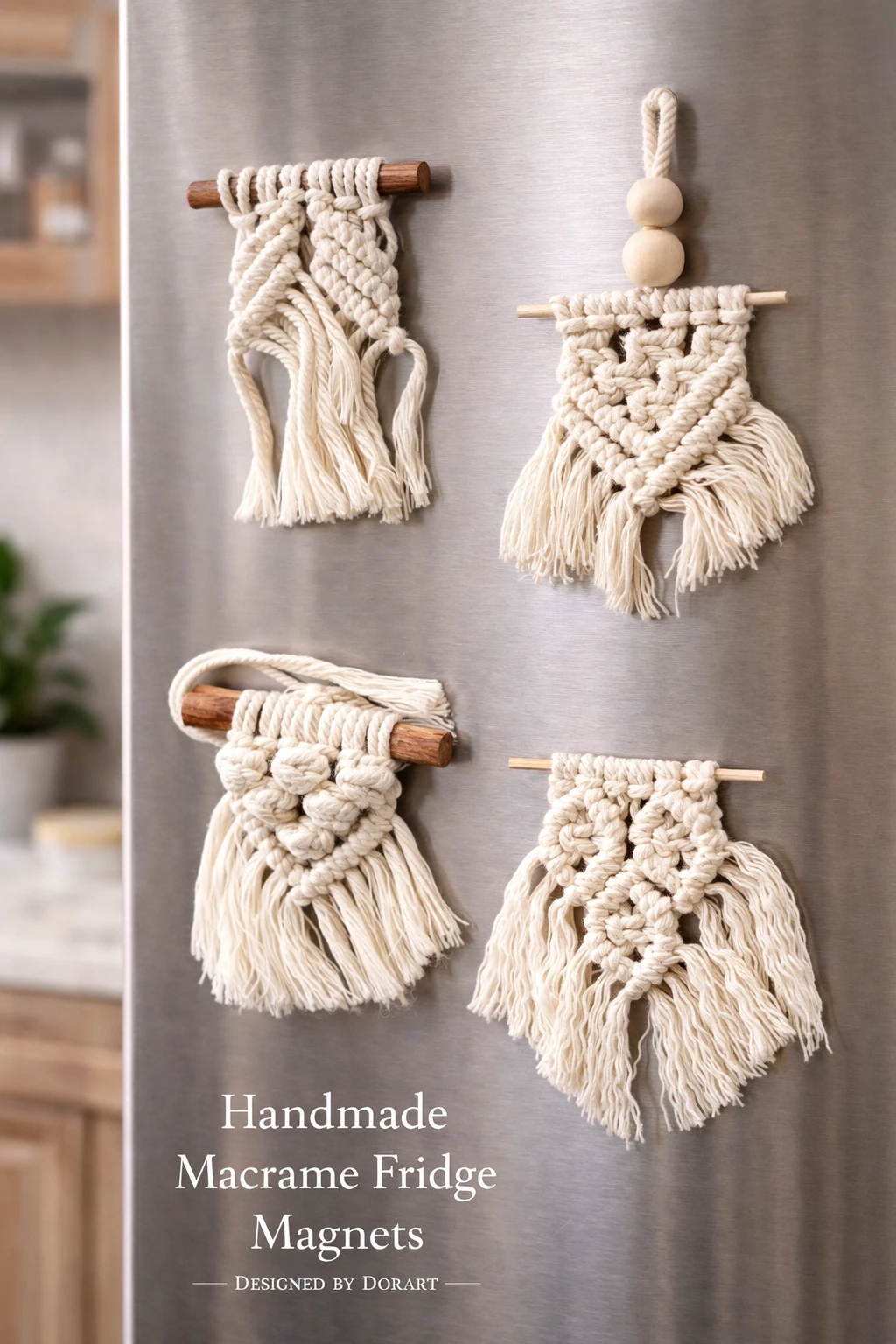 Add a charming handmade touch to your kitchen with our beautifully handcrafted macrame fridge magnets. Designed to be simple yet eye-catching, they bring a soft, decorative accent to your everyday space.
